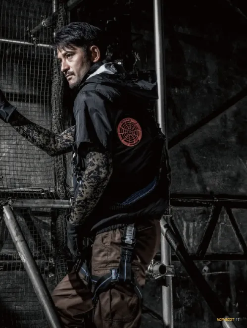 裏面チタンコーティングによる高い遮熱性とUPF50+の紫外線カット性能を備えたファン対応ベスト。ハイバックファン仕様で効率よく風を循環させながら、フルハーネス対応設計により装着時も動きを妨げず快適な作業性を実現。軽量約2.8ozのナイロン素材で体への負担を抑え、真夏の現場でも涼しさと安全性を両立します。