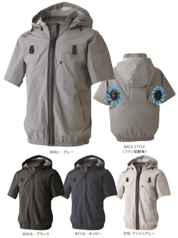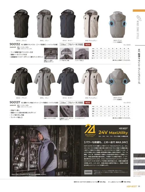 ■形状特長ハイバックファン仕様 フード脱着式 フードアジャスター フルハーネス対応 保冷剤ポケット ランヤード通し口 両胸ハーネスフック 左胸縦ファスナーポケット