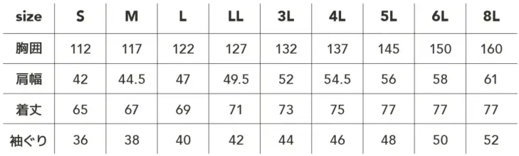 WZ 遮熱チタンベスト(フード脱着式/ハイバック仕様)ファン・バッテリー別売 CUC900132のサイズ表