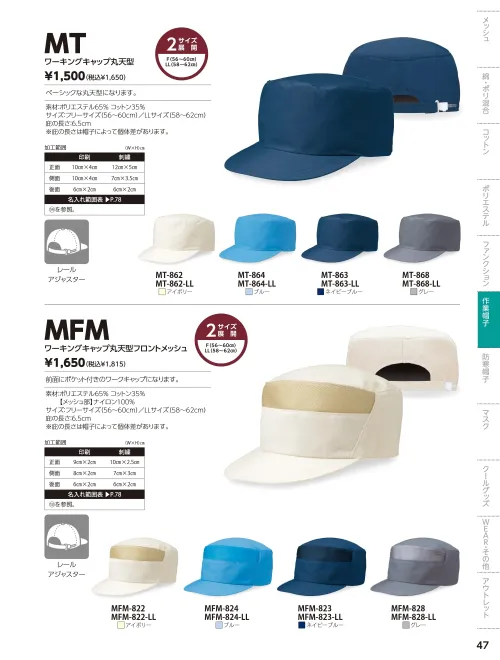 ワーキングキャップ丸天型フロントメッシュ MFM-824