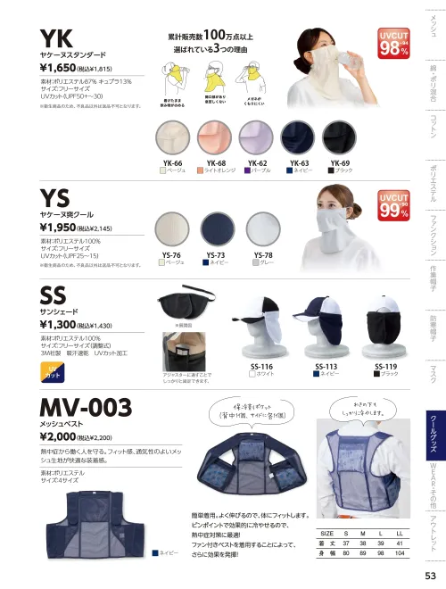 ■素材特長3M社製 吸汗速乾 UVカット加工