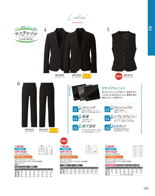 ■素材特長ストレッチ・軽量・ウォッシャブル・防シワ・吸汗性・速乾性・UVカット・サステナブル