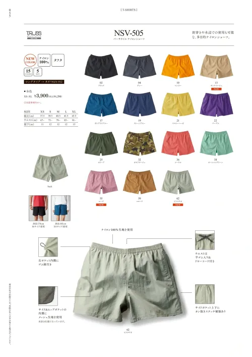 バーサタイル ナイロンショーツ フェリックNSV-505-Bのサイズ表