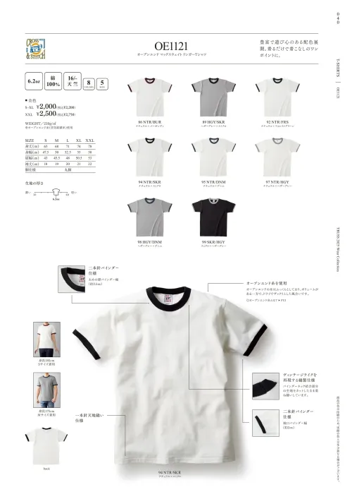 オープンエンド マックスウェイト リンガーTシャツ フェリックOE1121のサイズ表