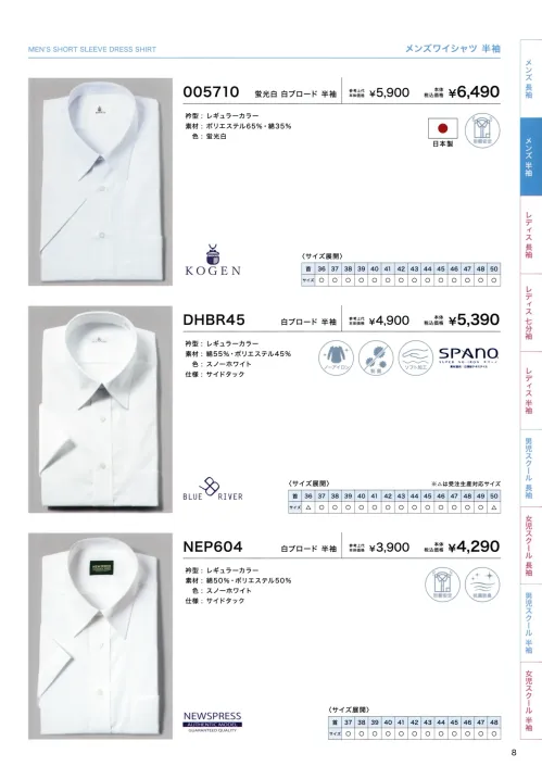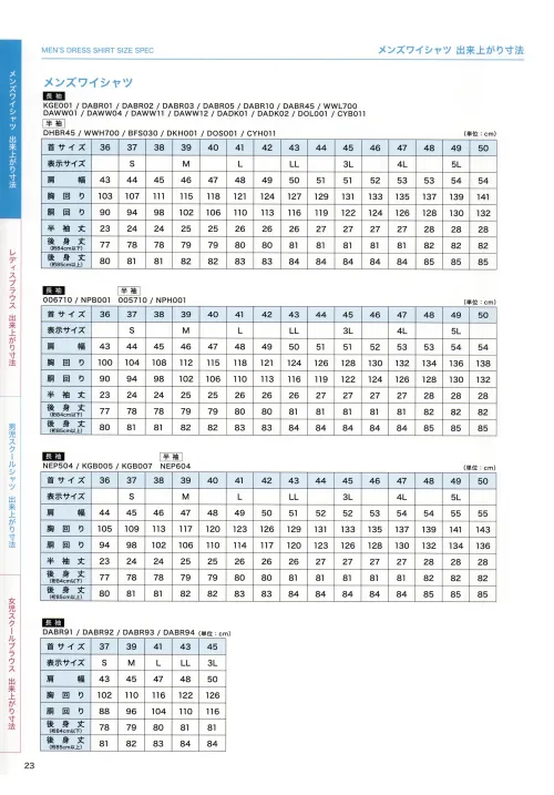 白ブロード 半袖 フレックスジャパンDHBR45のサイズ表