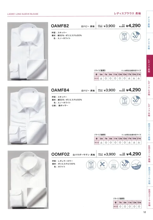 白ドビー 長袖 フレックスジャパンOAMF82のサイズ表