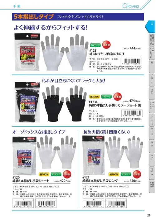 作業服JP 純綿指だし手袋ロング 福徳産業 121 作業服の専門店