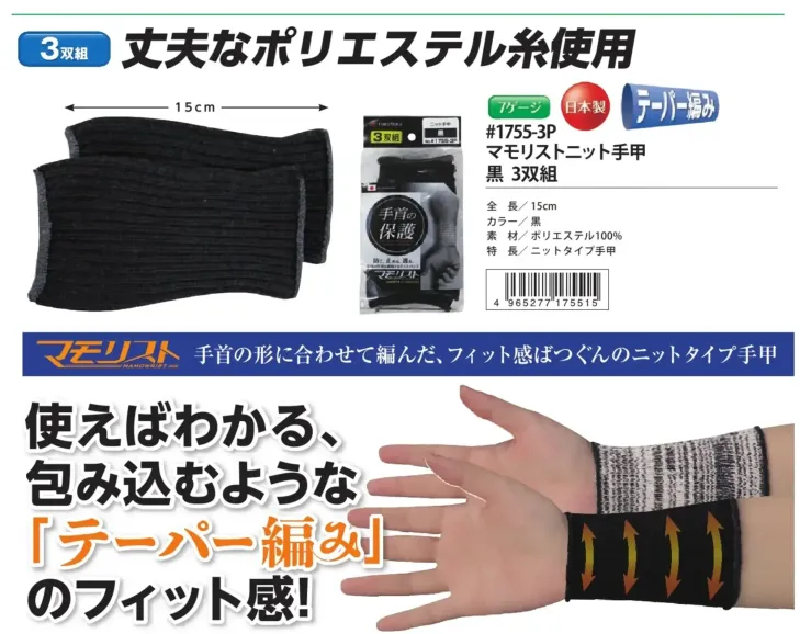 マモリストニット手甲 黒(3双組) 福徳産業1755-3P
