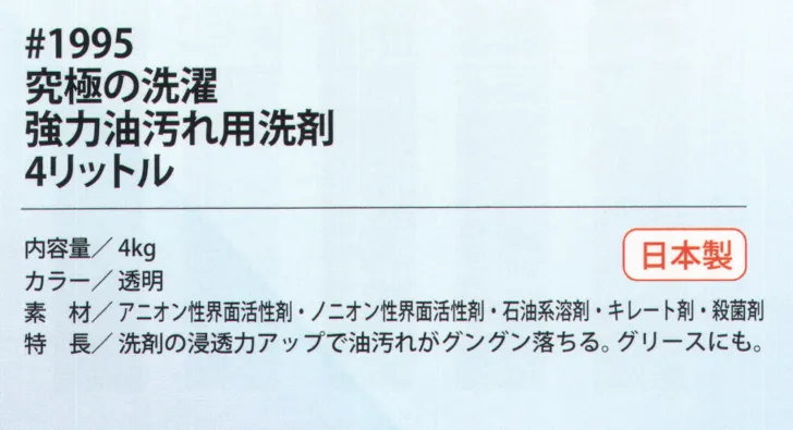 1995 究極の洗濯 強力油汚れ用洗剤(4リットル)