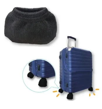 キャリーケースの車輪にかぶせるエチケット用品キャリーソックスです。旅行・出張先・自宅でキャリーケースを清潔に保管でき、パッとかぶせるだけで簡単装着。伸びる素材で付けやすく、一輪タイプ・二輪タイプのキャスターどちらにも対応し、室内を汚さず快適に使えます。