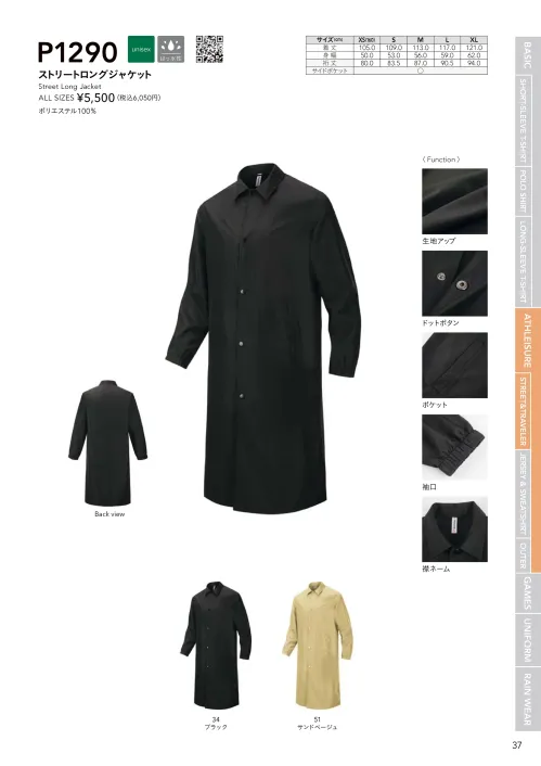 ストリートロングジャケット wundouP1290のサイズ表