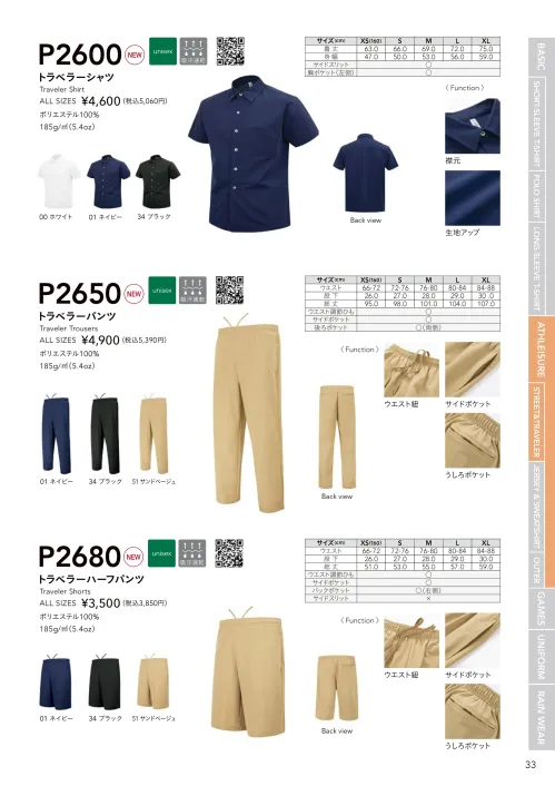 きちんと感と快適性を兼ね備えたユニセックス対応のトラベラーシャツです。ポリエステル100%素材を使用し、185g/m²(5.4oz)の適度な厚みで、シワになりにくく扱いやすい仕様。移動の多い業務や出張、サービス・カジュアルユニフォームまで幅広く対応します。