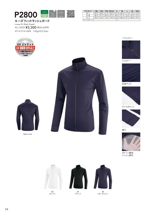 ルーズフィットラッシュガード wundouP2800のサイズ表