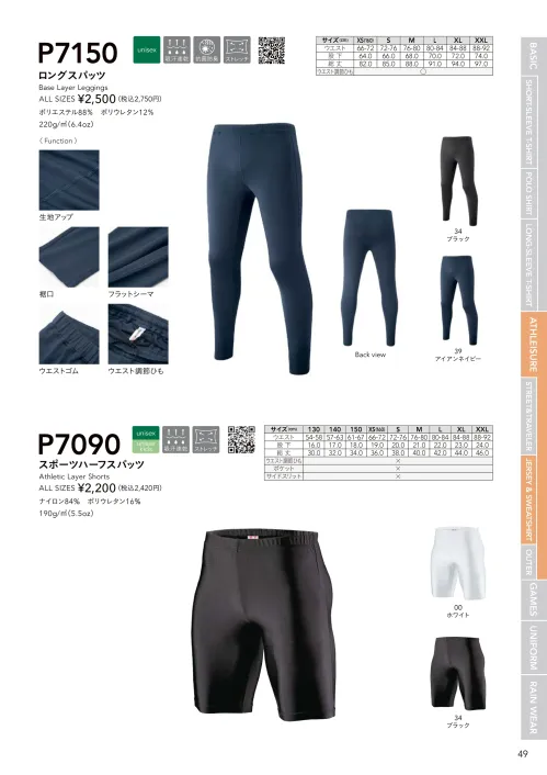 スポーツハーフスパッツ wundouP7090のサイズ表