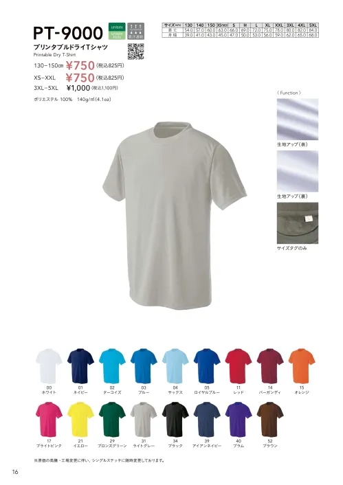 プリンタブルドライTシャツ wundouPT-9000-B