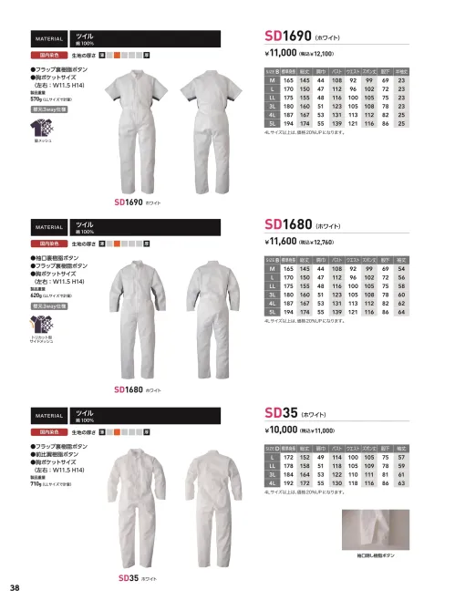 サマー続服(SD1680) ソルディ(日の丸)1680のサイズ表