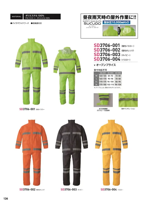 レインスーツ(SD3706-004) ソルディ(日の丸)3706-004のサイズ表