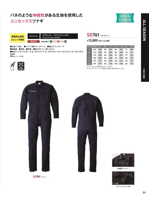 ストレッチ続服(SD761) ソルディ(日の丸)761のサイズ表