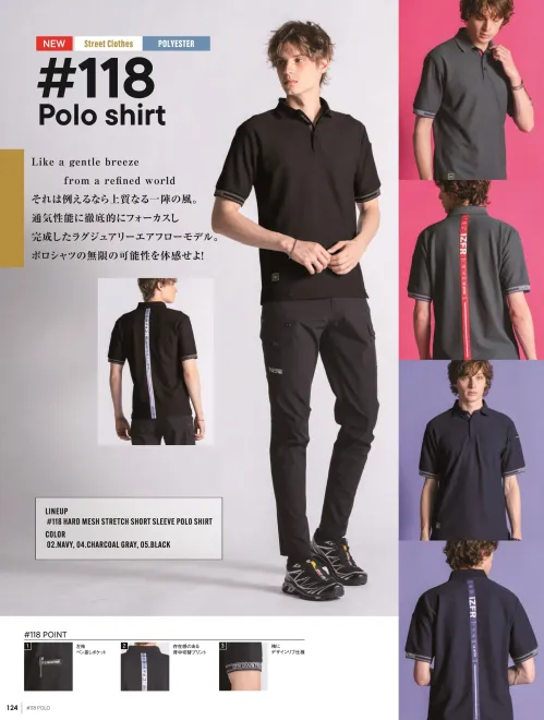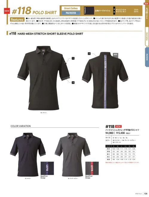 118 ハードメッシュストレッチ半袖ポロシャツ
