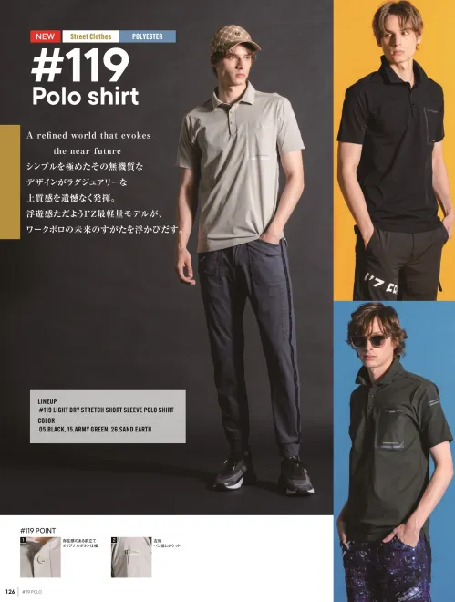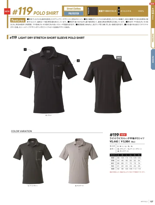 119 ライトドライストレッチ半袖ポロシャツ