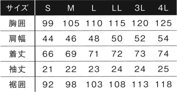 ライトドライストレッチ半袖ポロシャツ アイズフロンティア119のサイズ表