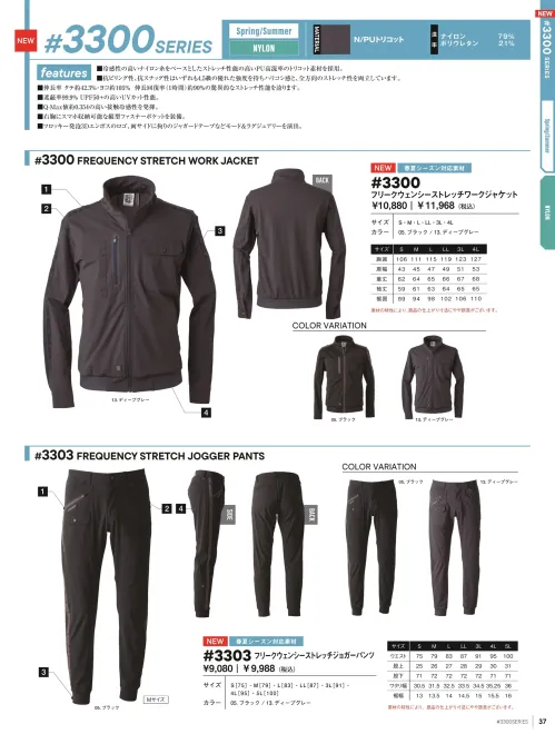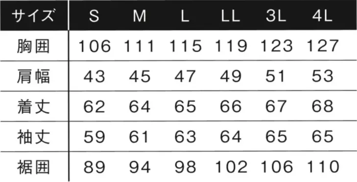 フリークウェンシーストレッチワークジャケット アイズフロンティア3300のサイズ表