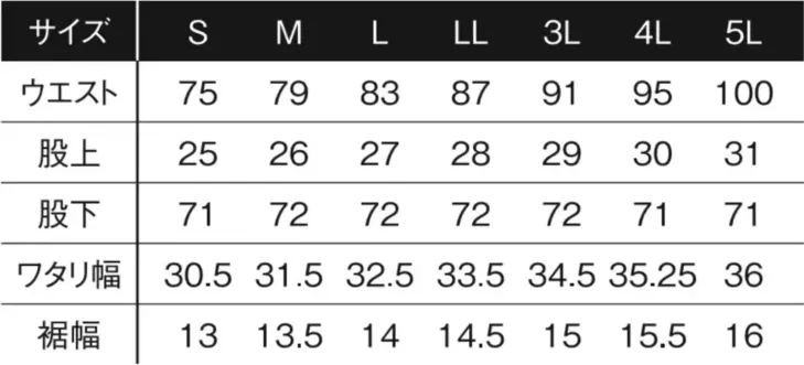フリークウェンシーストレッチジョガーパンツ アイズフロンティア3303のサイズ表
