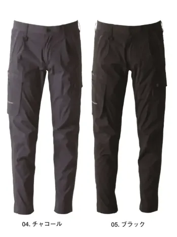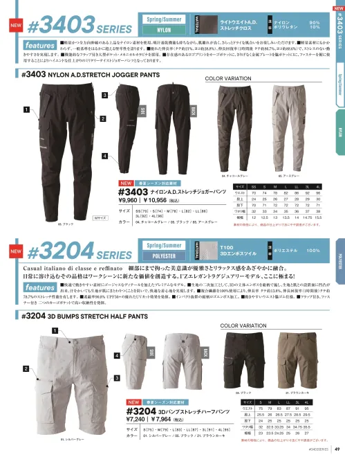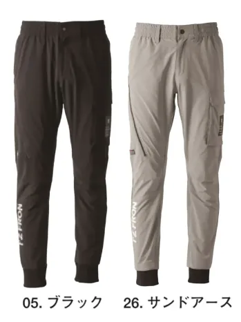 軽量で全方向伸縮のあるナイロンA.D.ストレッチクロスを採用したジョガーパンツ。タテ約21%ヨコ約28%の優れたストレッチ性と高い伸長回復率を備え、動きやすさと美しいシルエットを両立。吸汗速乾性によりムレにくく、春夏の現場でもさらっと快適な着用感を実現します。
