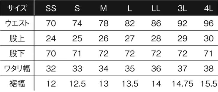 ナイロンA.D.ストレッチジョガーパンツ アイズフロンティア3403のサイズ表