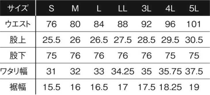 コールドフィールストレッチカーゴパンツ アイズフロンティア3492のサイズ表