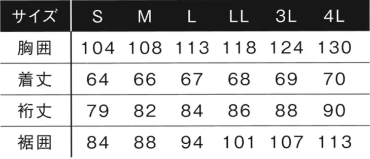 バックドライストレッチワークジャケット アイズフロンティア3810のサイズ表