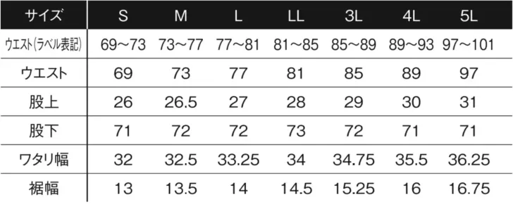 バックドライストレッチジョガーパンツ アイズフロンティア3813のサイズ表