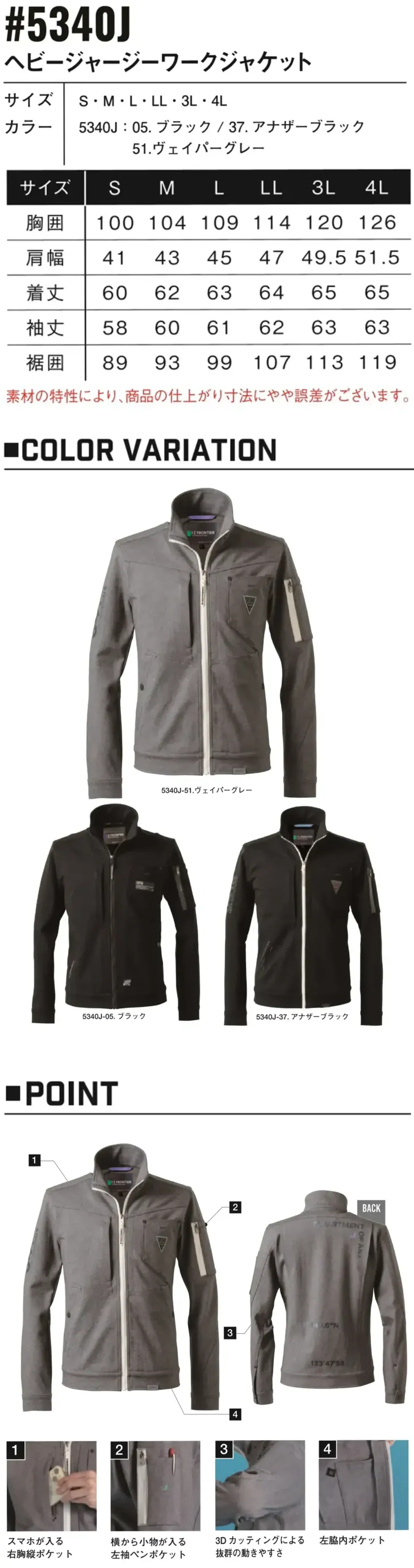 ヘビージャージ―ワークジャケット アイズフロンティア5340Jのサイズ表