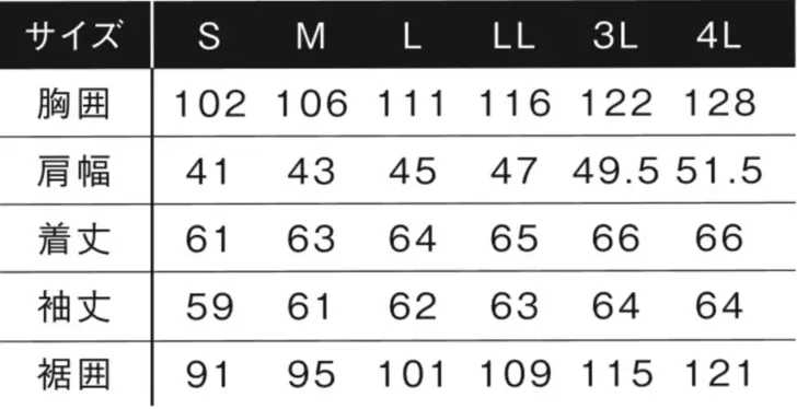 ・サイズ:S M L LL 3L 4L