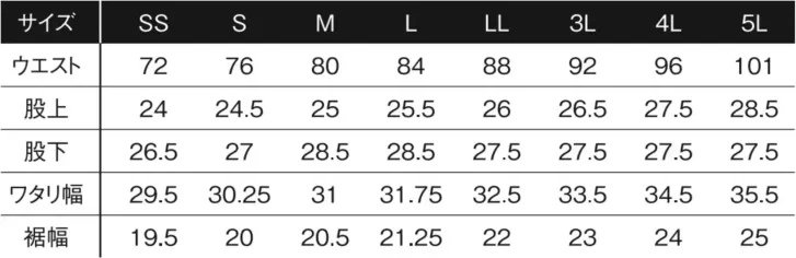 パウダーエアーストレッチハーフパンツ アイズフロンティア5404Pのサイズ表