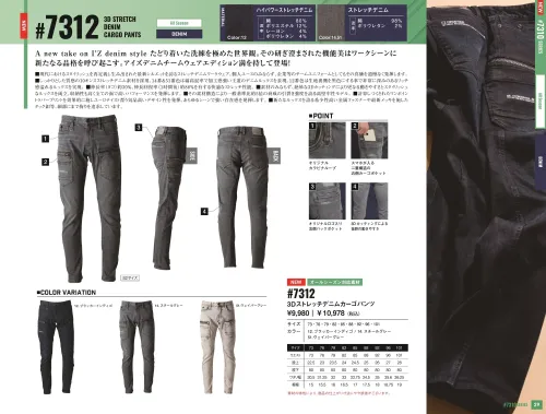 3Dストレッチデニムカーゴパンツ アイズフロンティア7312