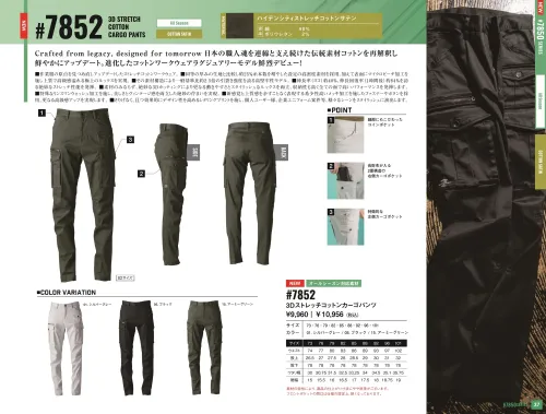 3Dストレッチコットンカーゴパンツ アイズフロンティア7852のサイズ表