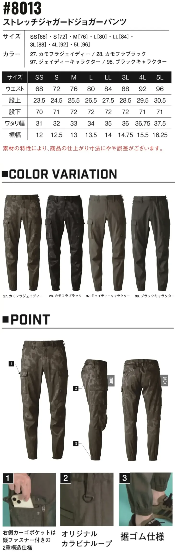 ストレッチジャガードジョガーパンツ アイズフロンティア8013のサイズ表