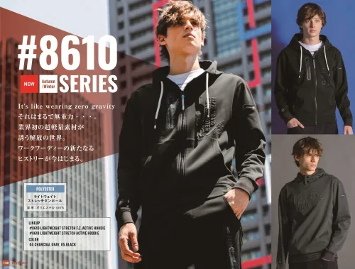 It’s like wearing zero gravity それはまるで無重力・・・。業界初の超軽量素材が誘う解放の世界。ワークフーディーの新たなるヒストリーが今はじまる。