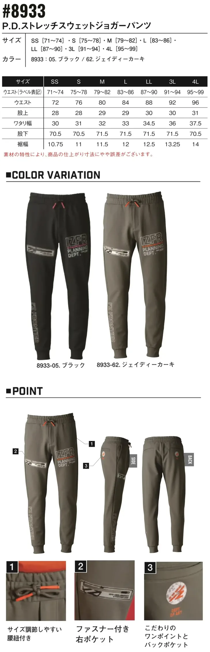 P.D.ストレッチスウェットジョガーパンツ アイズフロンティア8933のサイズ表