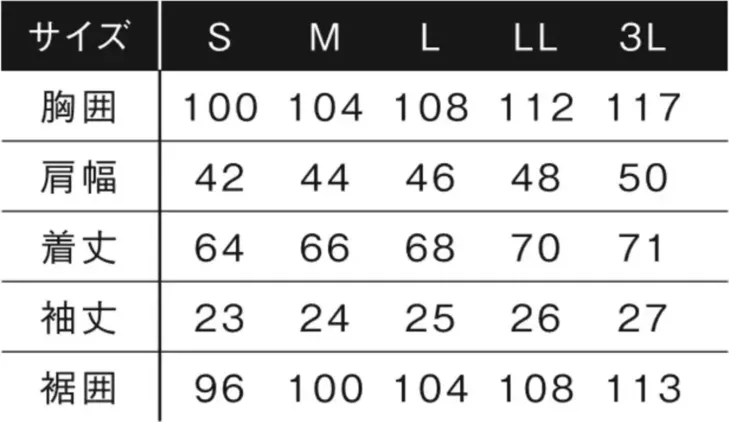 接触冷感クルーネックTシャツ(ホワイト) アイズフロンティアCP009-Bのサイズ表