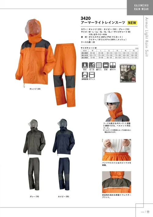 アーマーライトレインスーツ カジメイク3420のサイズ表