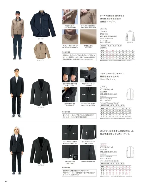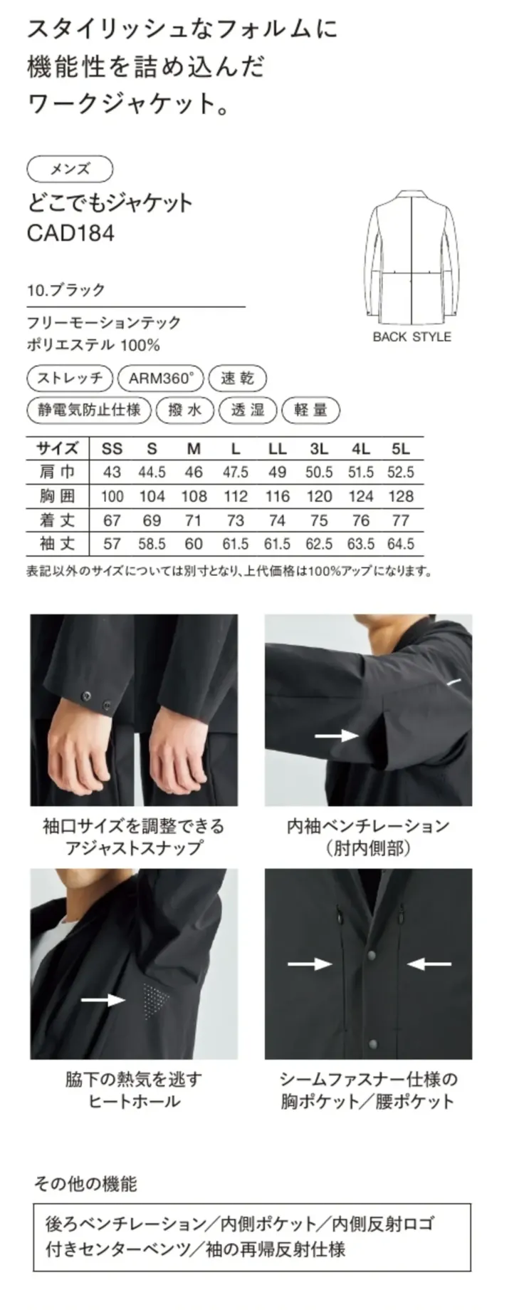 どこでもジャケット ハンズオンCAD184のサイズ表