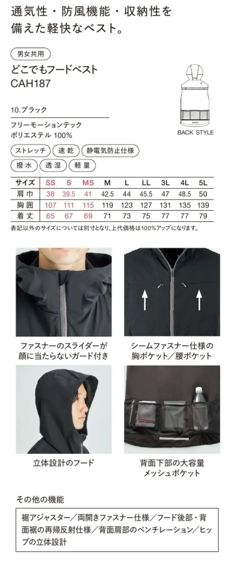どこでもフードベスト ハンズオンCAH187のサイズ表