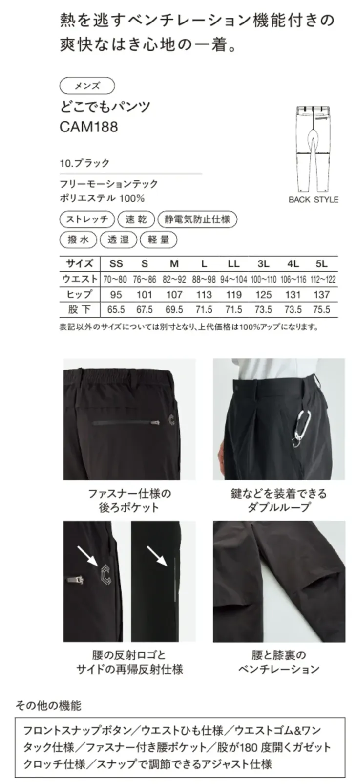 どこでもパンツ ハンズオンCAM188のサイズ表