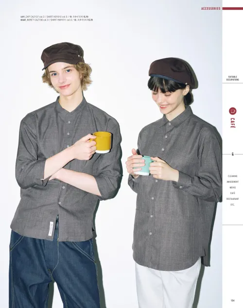 ひと味ちがう、技ありアイテム。商業施設の雰囲気も、スタッフの身だしなみも、さりげなく演出。内側の額にふれる部分には、汗を吸収するリボンを採用し、ワンポイントの丸穴は、通気孔としての役割も果たします。また、CAREANのアイコンである蛍光テープがクリーンスタッフを認識させる役割をしています。アクティブなキャップスタイル。ボーイッシュな印象をプラスできます。