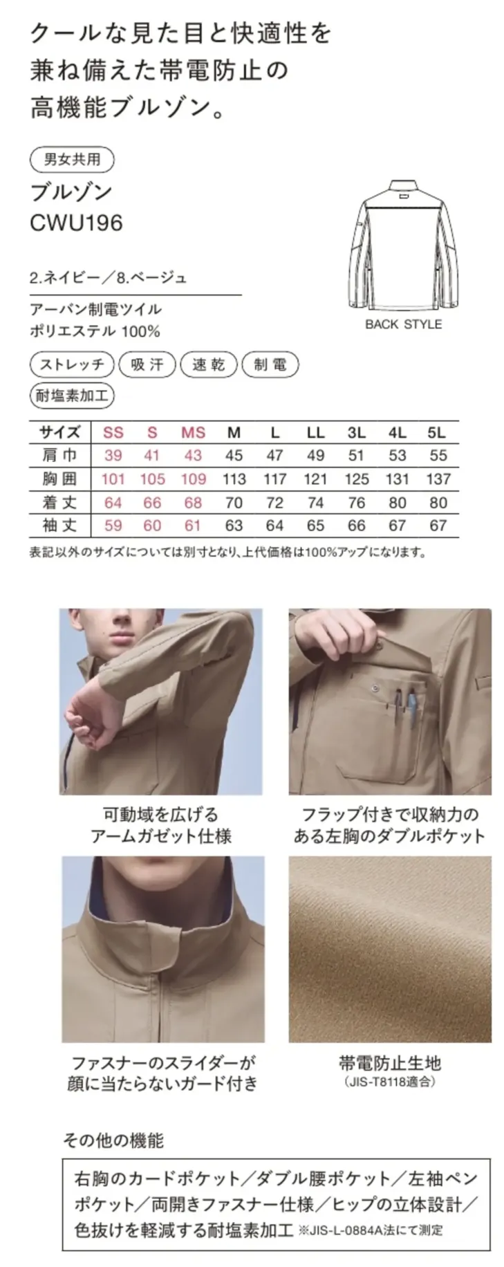 スマホ店を表示しています。PC店はこちらです。 作業服JP ブルゾン ハンズオン CWU196 作業服の専門店