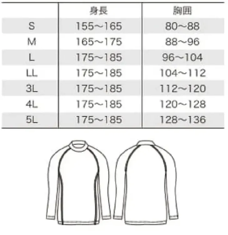 ・サイズ:S、M、L、LL、3L、4L、5L