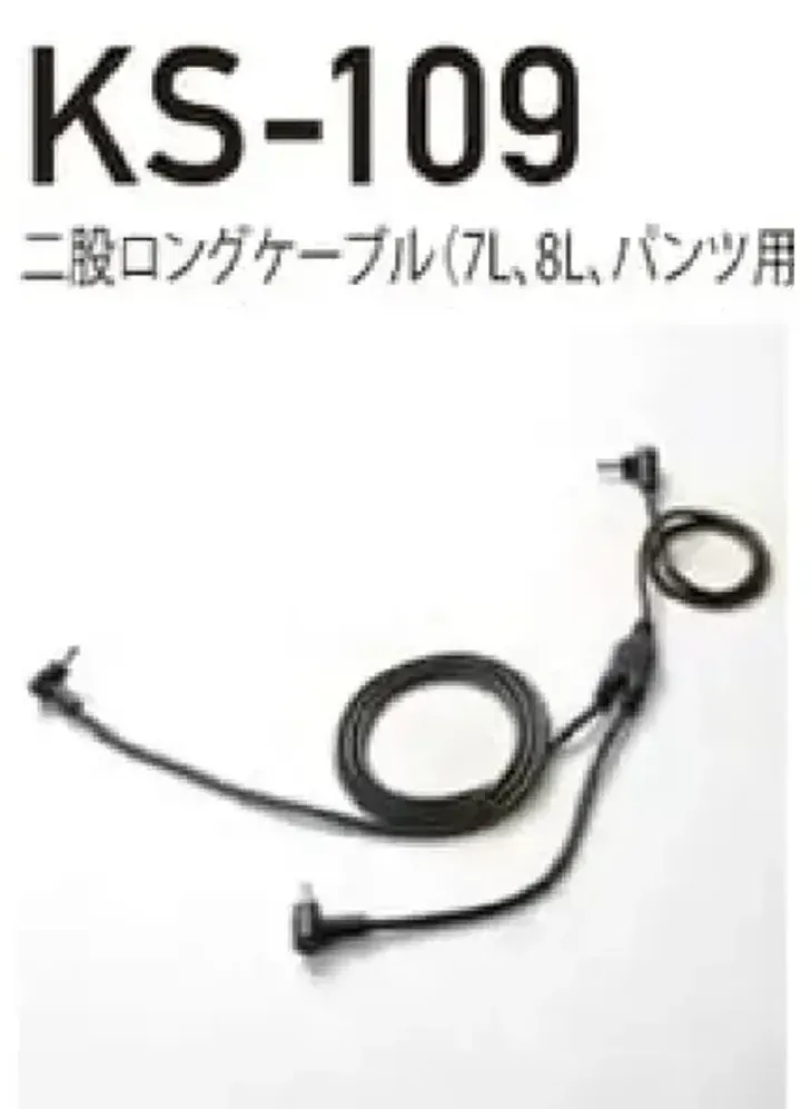 エアセンサーKS-100対応の二股ロングケーブルです。7L・8Lサイズのジャンパー・ベスト・パンツに搭載されたエアセンサーの接続に対応。大型サイズ特有の長い配線距離を考慮した設計により、ファンとバッテリーを安定して接続し、快適な送風環境をサポートします。※この商品はご注文後のキャンセル、返品及び交換は出来ませんのでご注意下さい。※なお、この商品のお支払方法は、先振込(代金引換以外)にて承り、ご入金確認後の手配となります。