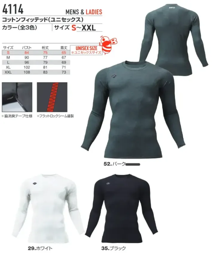 バートル 4114 コットンフィッテッド オールシーズン対応 コンプレッションシャツ